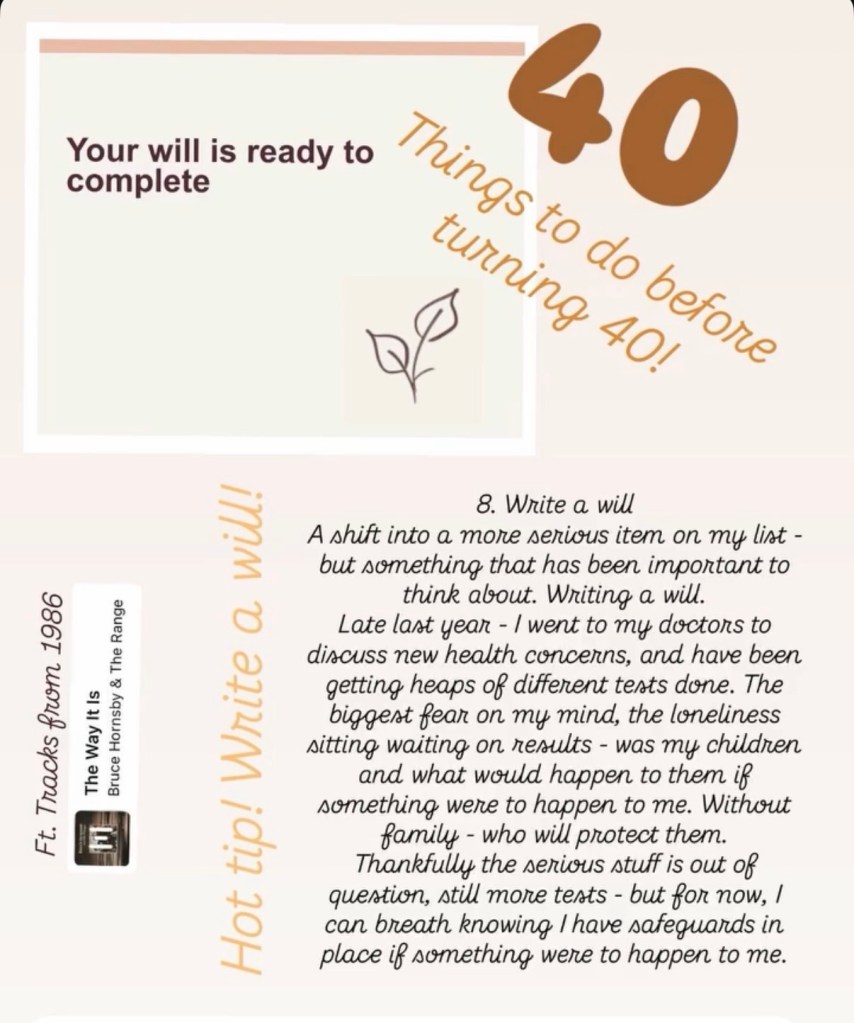 Last year, while writing my “40 things to do before 40” list, that thought became louder. It wasn’t something I could keep putting off. It sat there, heavy and unresolved, tied not just to fear – but to responsibility. I couldn’t put it off, because if something ever did happen to me, I needed to know that my children would be okay.